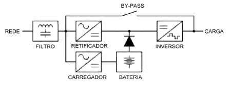 Já os nobreaks online estão sempre alimentando os equipamentos pelas baterias, sendo assim, quando há queda de energia, não existe tempo de ativação para as baterias. Ou seja, a energia passa para o nobreak e o nobreak alimenta os equipamentos diretamente pela bateria. Dessa forma, a bateria está sempre carregando e distribuindo energia. É o modelo ideal para equipamentos mais sensíveis e que não podem sofrer com alterações na energia.